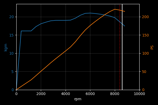 Note that intake system & exhaust parts also affect the graph, but assumedly only by scaling all torque/power values by the same %age.